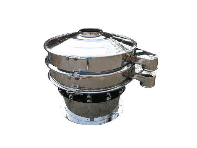 旋振篩(圓形振動篩)由立式振動電機作激振源,因為其上下端重錘安裝在發動軸兩側,使電機的旋轉運動轉變為垂直、水平、傾斜的三次元運動。  旋振篩產品特點:  設計精巧,耐用,適合任何粉類以及粘性液體的篩分。  操作簡單,換網方便,易于清洗?! 『Y網無阻塞,粉末無飛揚?! ‰s質以及粗料自動排出,并且可以與給料設備、輸送設備配套使用,處理量大,生產效率高?! 〕叽缧?,節省空間,易于移動。  易于養護,可單層或多層使用?! 『Y網設計合理耐用,換網只需3-5分鐘。  篩網可達5層,篩分出6種不同顆粒大小的物料